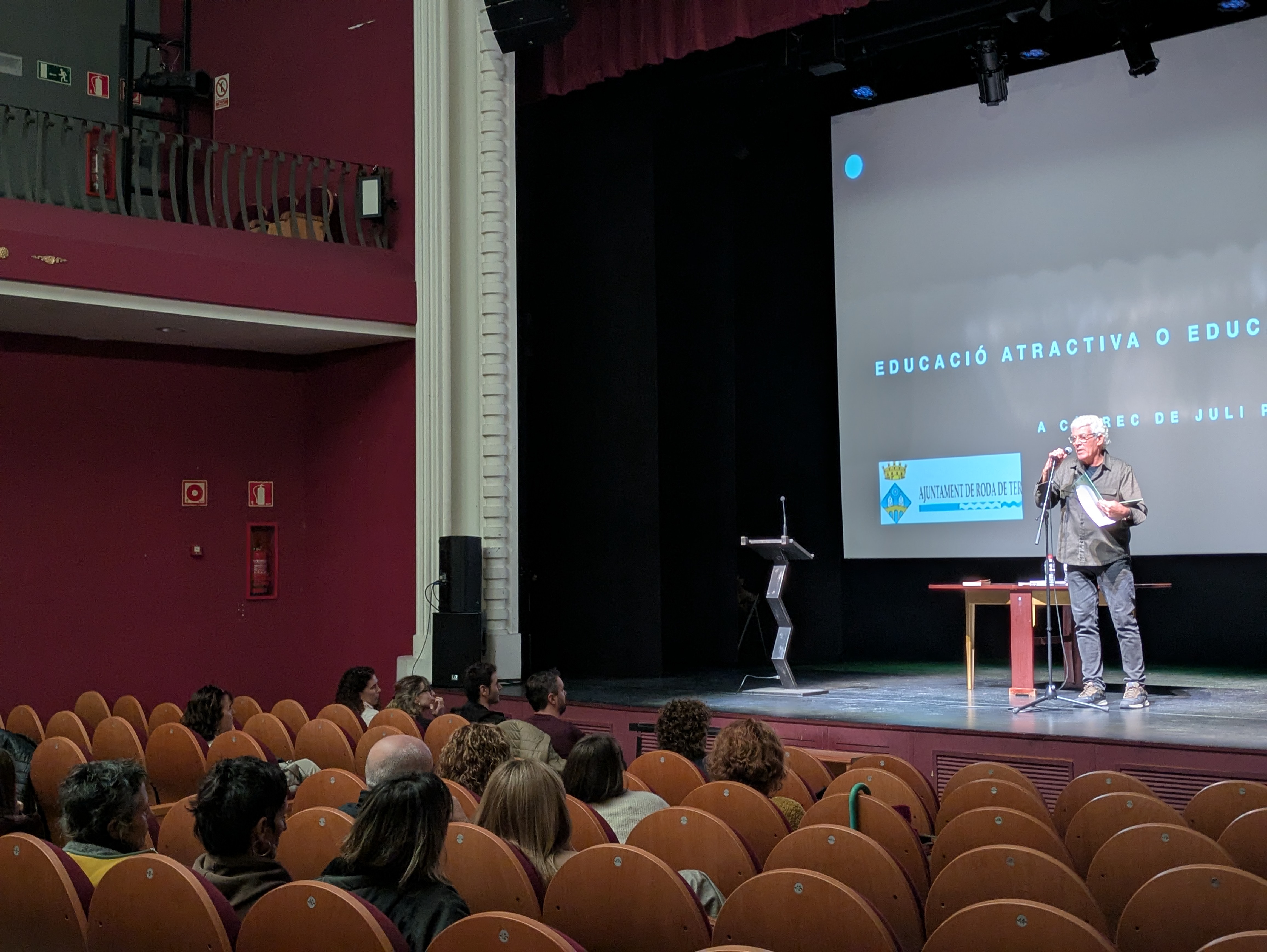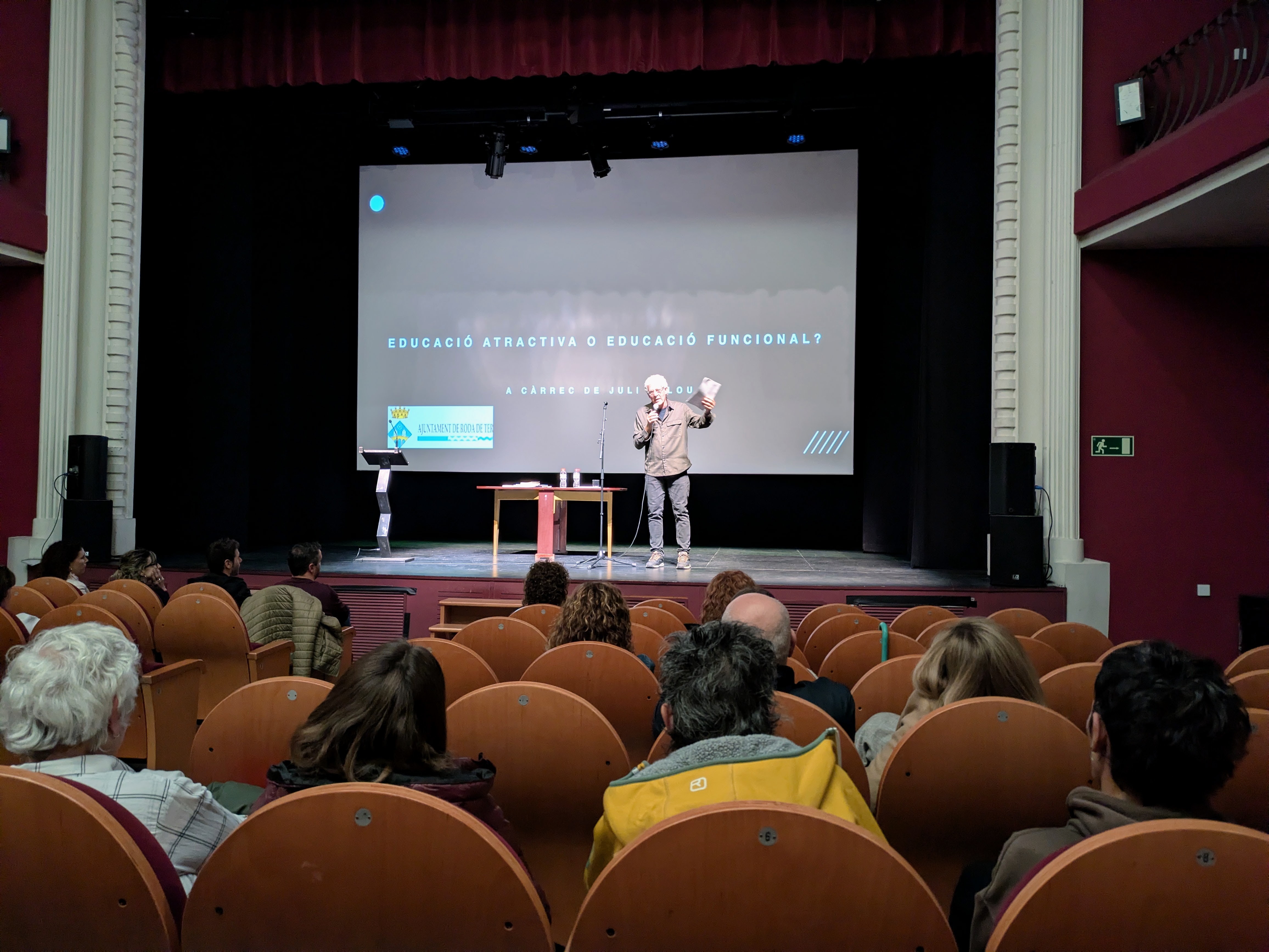 El Teatre Eliseu va acollir el dijous 6 de novembre la conferència inaugural del curs escolar 2025-2026. L'acte, organitzat per la regidoria d'Educació i adreçat a la comunitat educativa, va ser obert pel regidor Joan Escarrabill, que va agrair "la feina i la dedicació que fan possible el dia a dia dels centres educatius" del municipi, des de la llar d'infants fins a l'institut i l'escola de música. Escarrabill va posar en valor el "teixit educatiu ric i compromès" de Roda de Ter, destacant el Pla Educatiu d'Entorn com "un bon exemple de col·laboració entre centres, entitats, famílies i administracions". El regidor també va subratllar els reptes de "continuar treballant per un municipi educatiu i inclusiu", "fer front a les desigualtats socials" i "enfortir el vincle entre educació i comunitat".