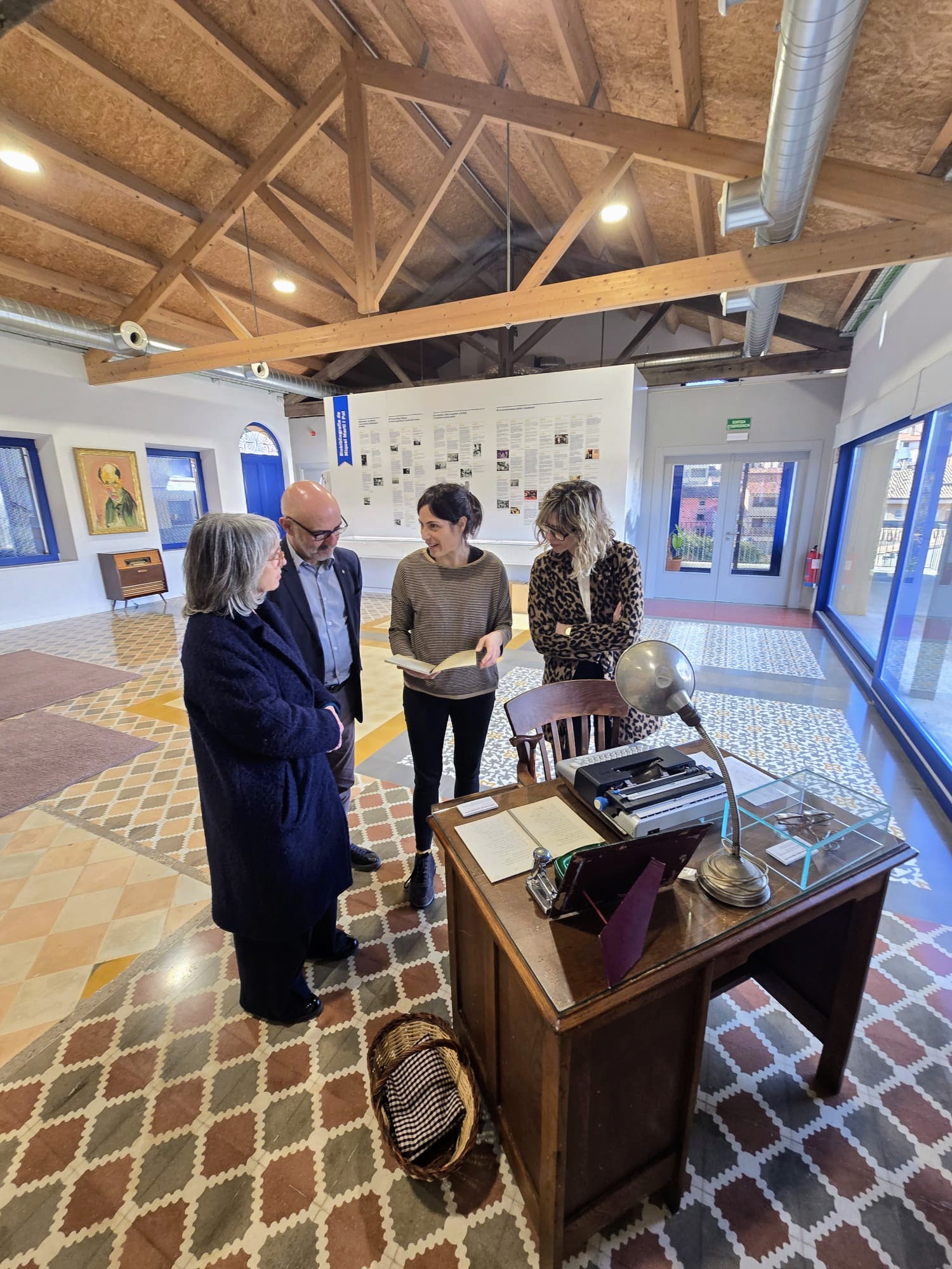 El director general de Patrimoni Cultural de la Generalitat de Catalunya, Joaquim Borràs, acompanyat de la cap del Servei de Museus i Protecció de Béns Mobles, Sonia Blasco, ha visitat aquest dijous 19 de febrer els dos equipaments museístics de Roda de Ter: la Fundació Miquel Martí i Pol i el Museu de l'Esquerda.