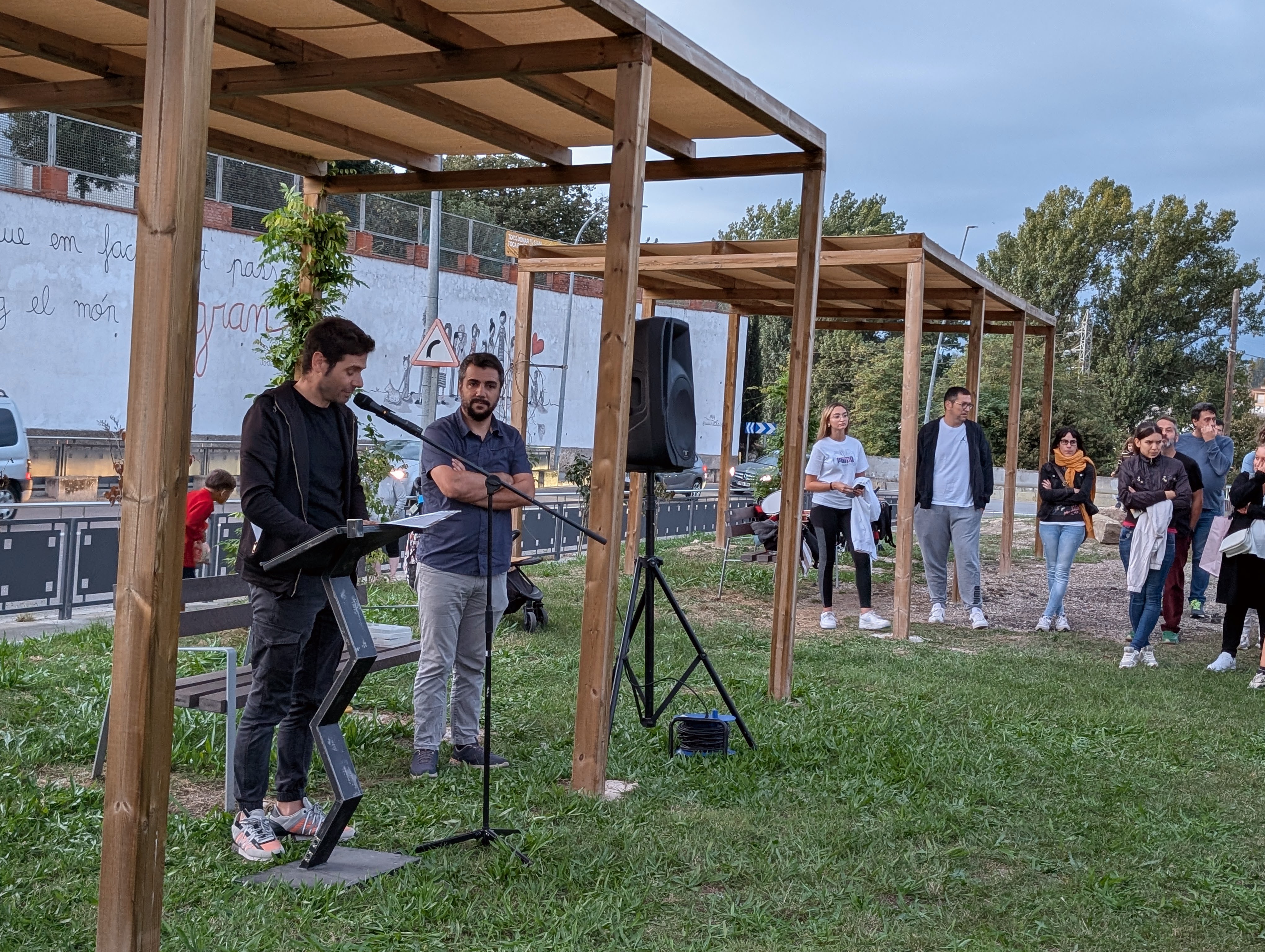 L'acte va començar amb la intervenció de l'alcalde, Toni Mas, qui va obrir l'acte ressaltant la importància de disposar de nous espais públics, amb zones verdes per als veïns i veïnes, i el protagonisme que hi han tingut els alumnes de les escoles. Per la seva part, el regidor de Participació Ciutadana i Educació, Joan Escarrabill, va presentar el procés participatiu. El regidor va aprofitar per agrair la implicació de tots els participants i, especialment, "de l'alumnat que va liderar aquest procés: els estudiants de tercer de primària de l'any passat, que aquest any cursen quart", centres educatius i famílies. A continuació, infants i una representació dels més joves de la colla dels Diables del Pont Vell van ser els encarregats de descobrir una placa amb el nou nom de l'espai que vol ser «punt de trobada, un racó obert a la cultura, la natura i la creativitat». El nou Peix de Foc s'ha adequat els darrers mesos i compta -entre d'altres- amb bancs, arbres, una pèrgola o una font.