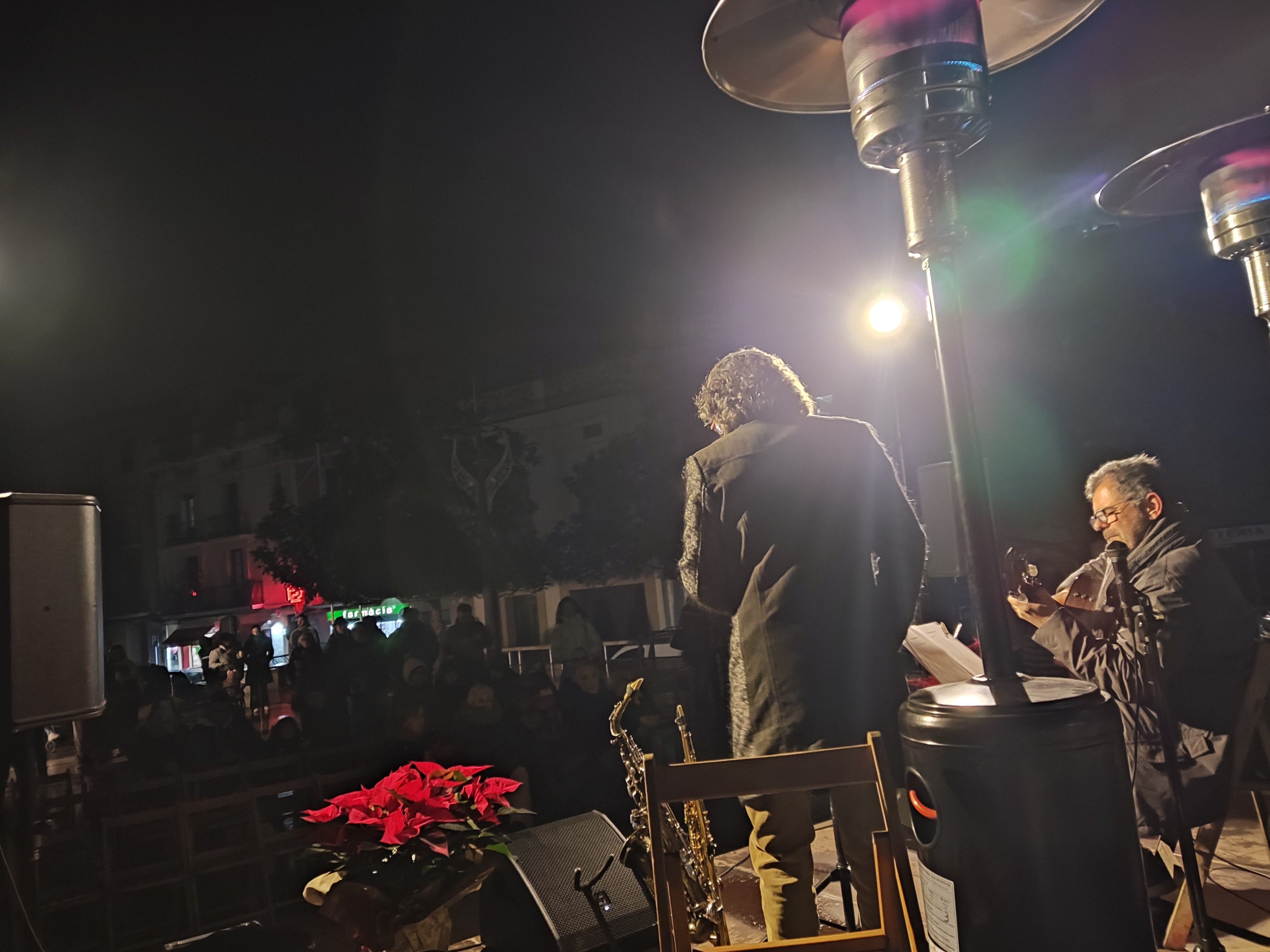 L’inici de la festa va ser a les 18 h amb el concert de Pep Poblet i Joan Garrobé, que van oferir un repertori de Nadales i cançons populars clàssiques i modernes. Tot i la temperatura de només 4 °C, el públic va respondre amb calidesa i va omplir la plaça per gaudir de l’actuació.