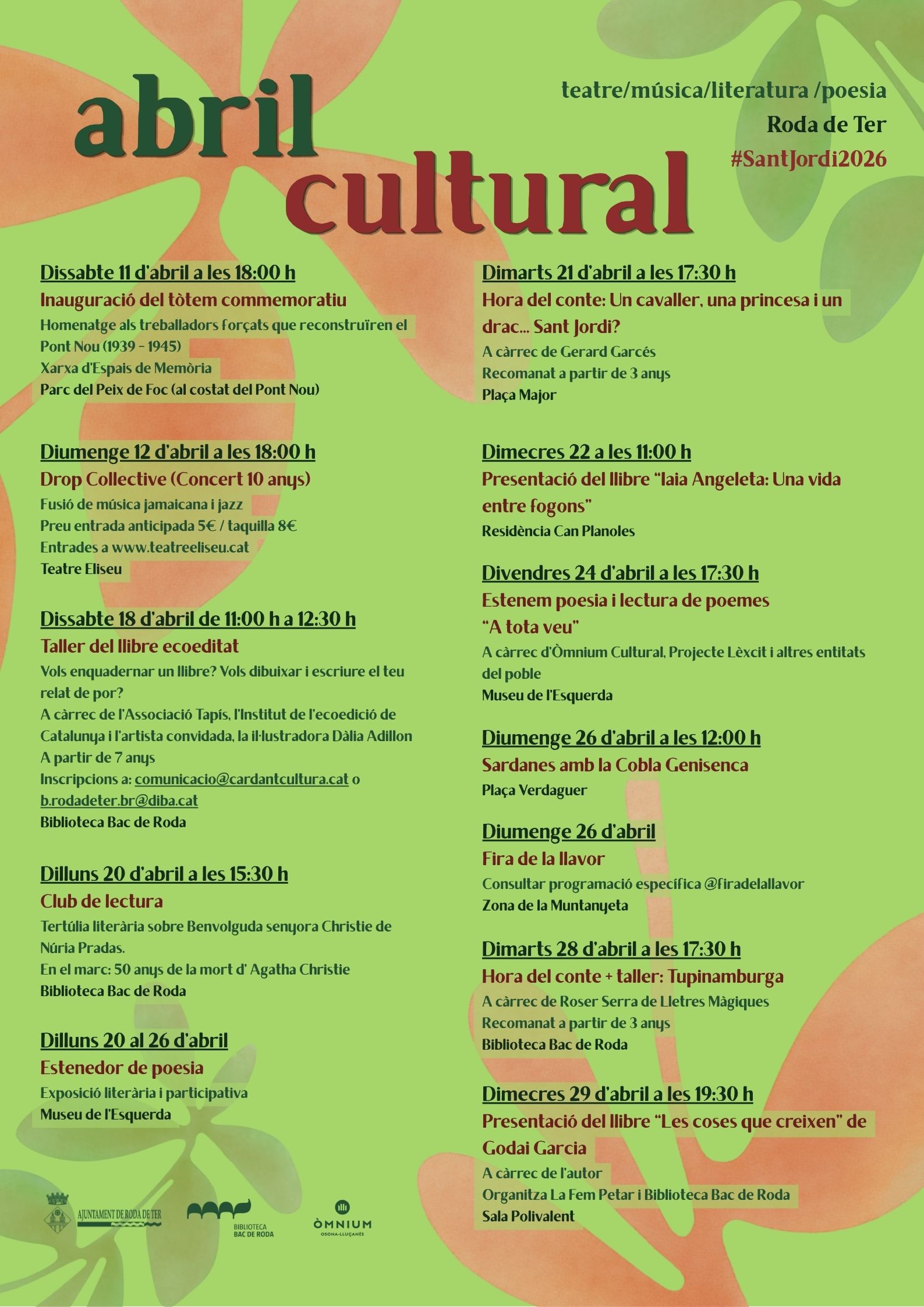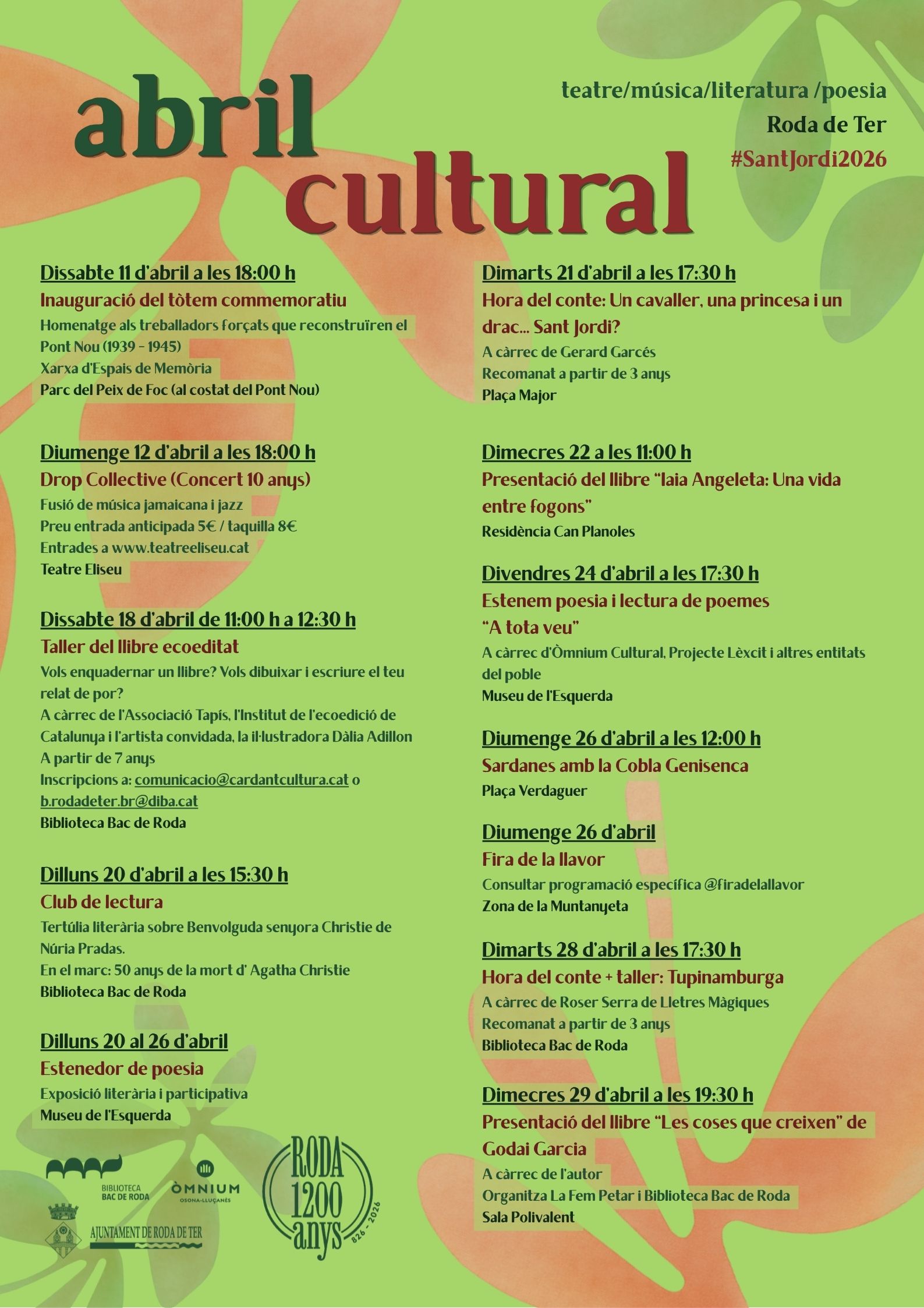 Amb aquesta proposta, Roda de Ter reafirma el seu compromís amb la cultura i la participació ciutadana, oferint un programa que combina memòria, creativitat i tradició en el marc de la celebració de Sant Jordi.
