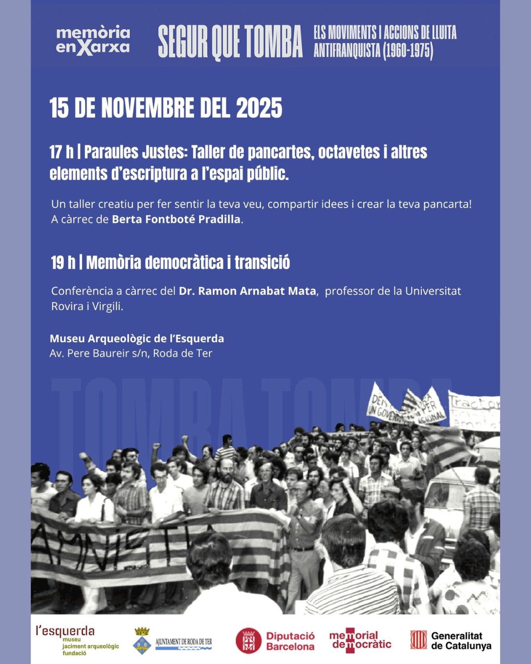 - Col·labora: Ajuntament de Roda de Ter, Diputació de Barcelona, Memorial Democràtic i Generalitat de Catalunya