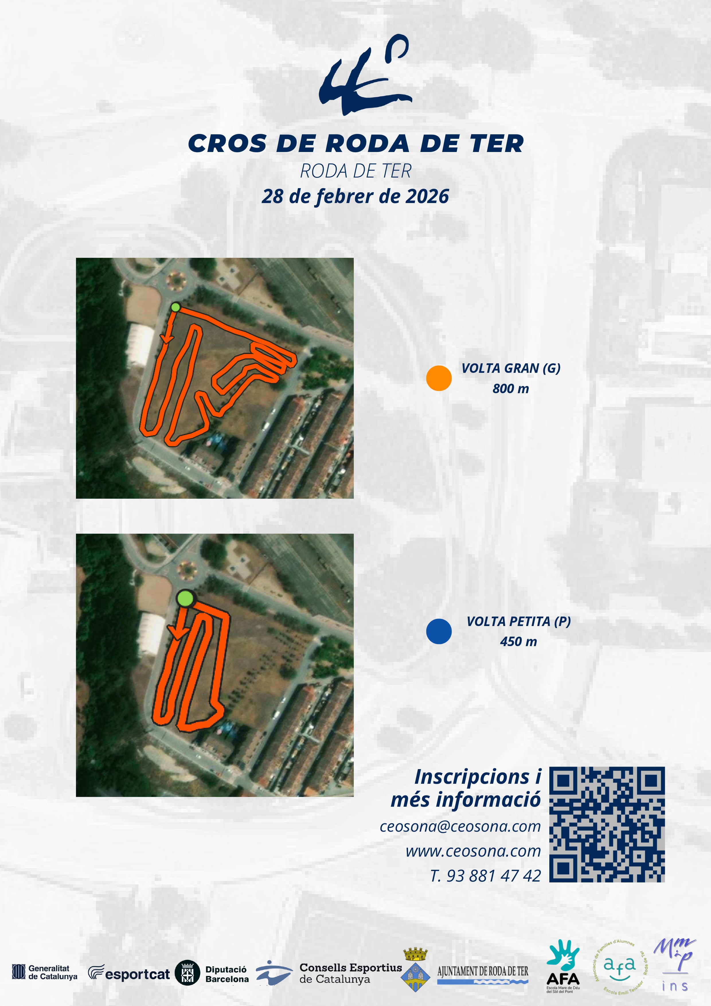 El lliurament d’acreditacions (dorsals) es farà fins a una hora abans de l’inici de la cursa de cada categoria.