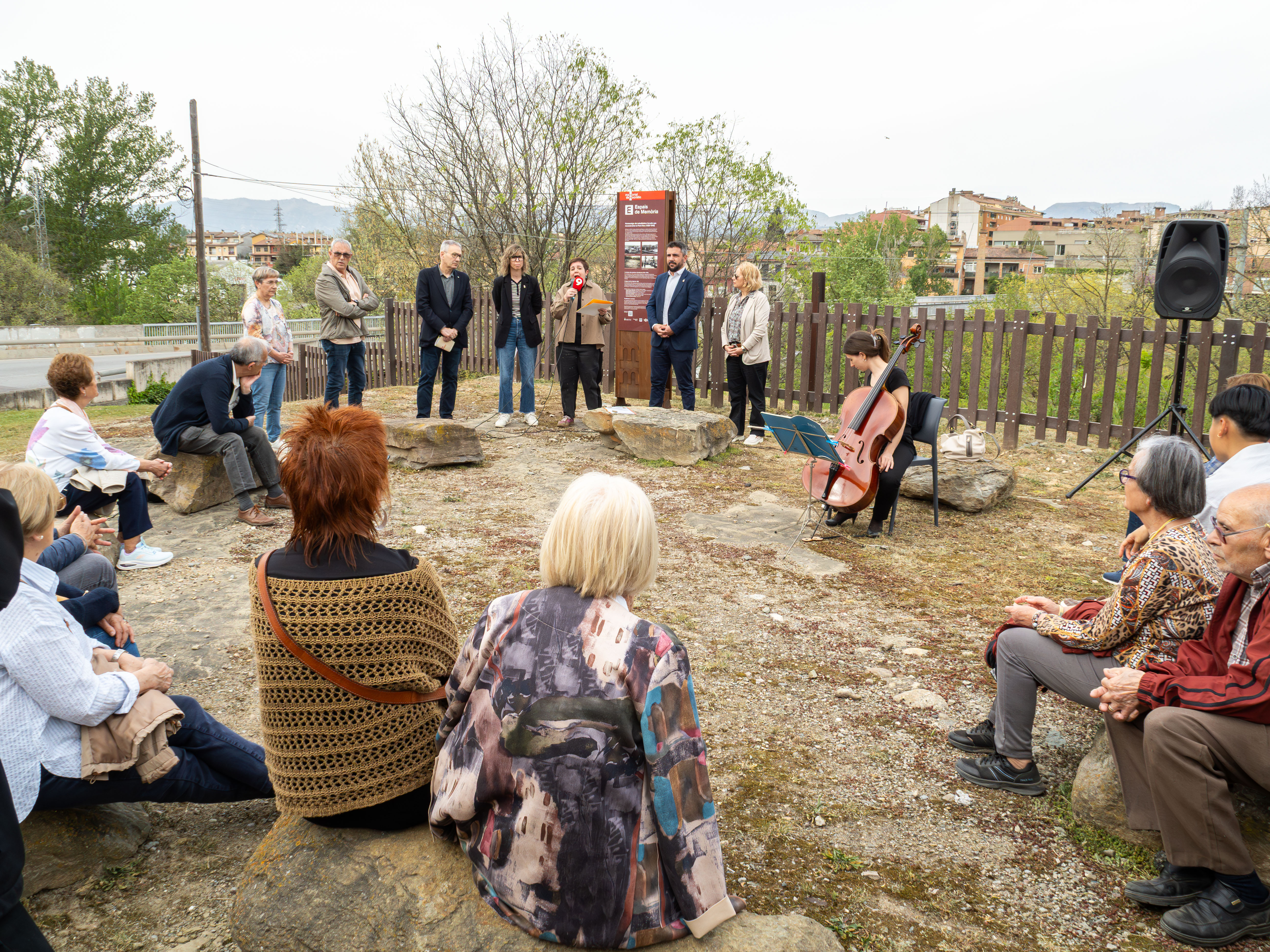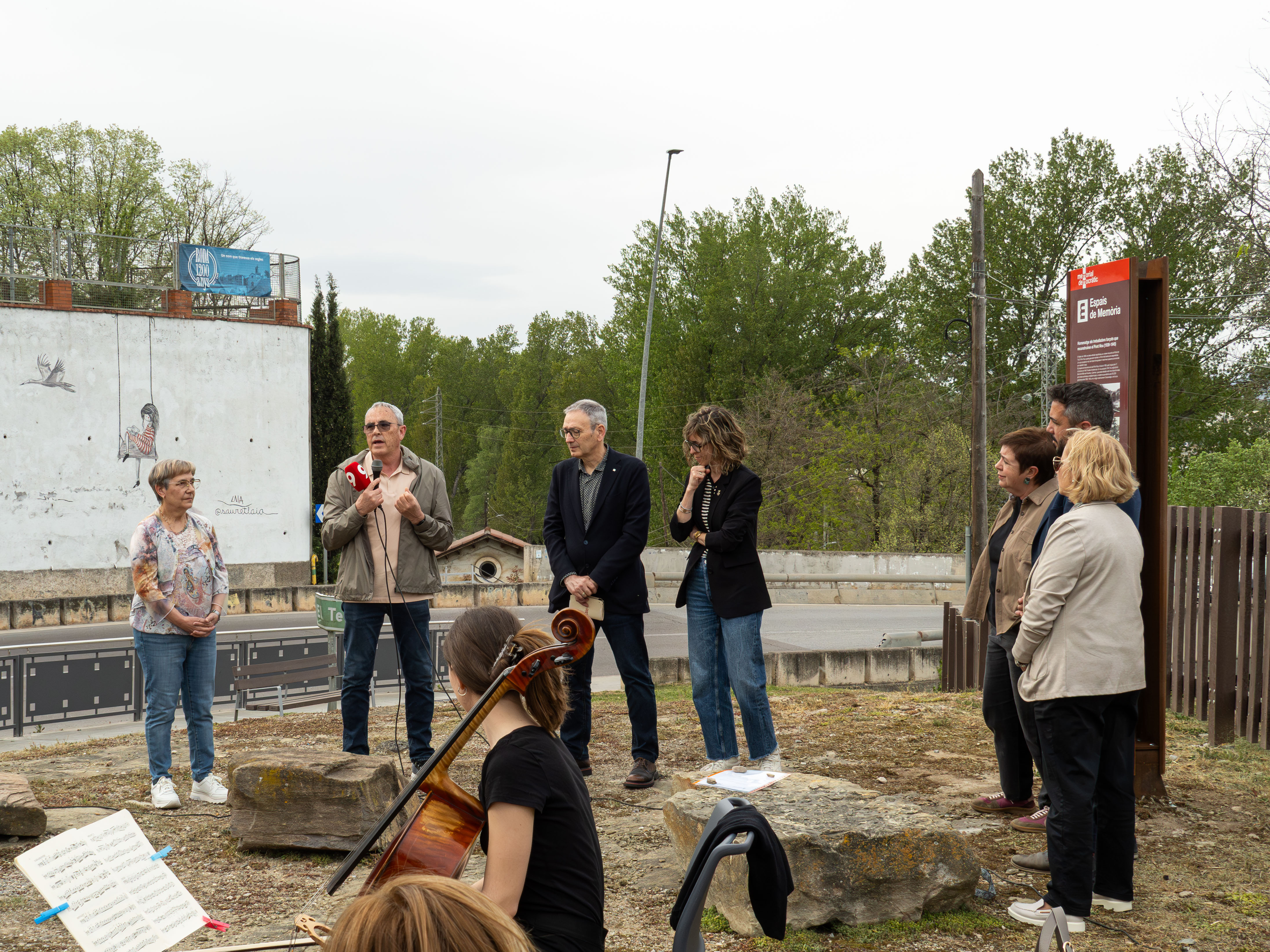 L’acte va tenir lloc a la zona enjardinada al costat del Pont Nou i va comptar amb una àmplia participació institucional, associativa i ciutadana. La regidora de Cultura i Patrimoni, Bet Contreras, va obrir l’acte donant la benvinguda als assistents i destacant el valor de la iniciativa com “un acte de justícia i reparació en el marc de la memòria democràtica”. També va agrair el paper de totes les persones i col·lectius implicats en el projecte, amb una menció especial a la tasca de recerca de l’Arxiu Històric de Roda i Les Masies de Roda en la recuperació d’aquesta memòria.